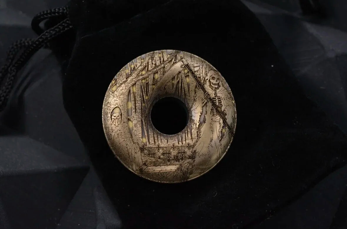 Machined from solid brass , the GrimNutz features a beatifully brooding Grim Reaper artwork, and will patina beautifully with time and use. If you're looking for the ultimate fidget tool that provides a tactile experience unlike any other – this donut takes the cake.