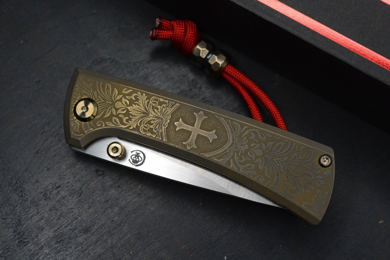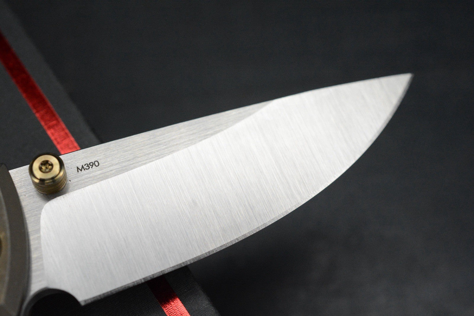 CUSTOM Chaves RCK9 Crusader Blade Show Exc Ti - Belt Satin DP M390 w/ Brass Bead