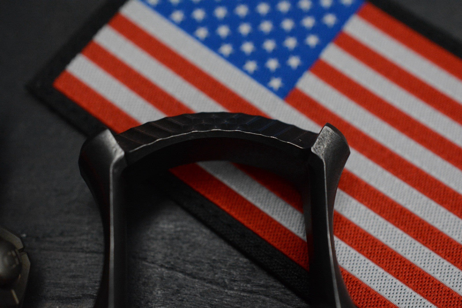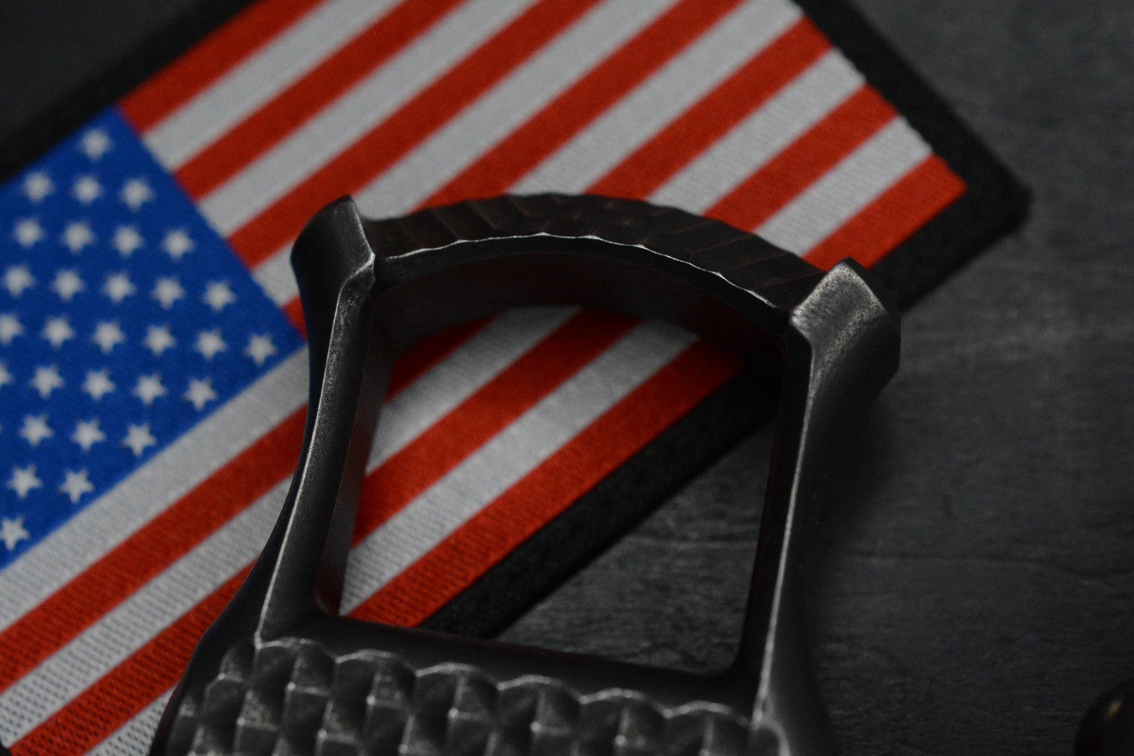 CUSTOM CJ’s Cave 1FK Diamond Plate Patina Brass Bottle Opener w/CKF Bead & Patch