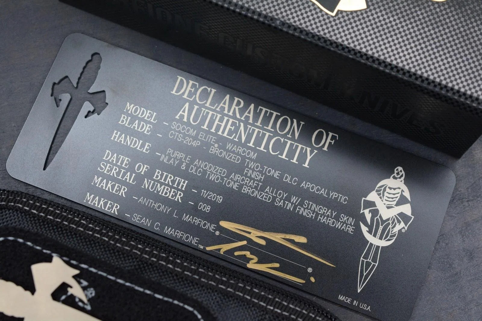 CUSTOM Marfione Socom Elite Warcom 204P Hand Ground Purple Ano / Stingray Inlay
