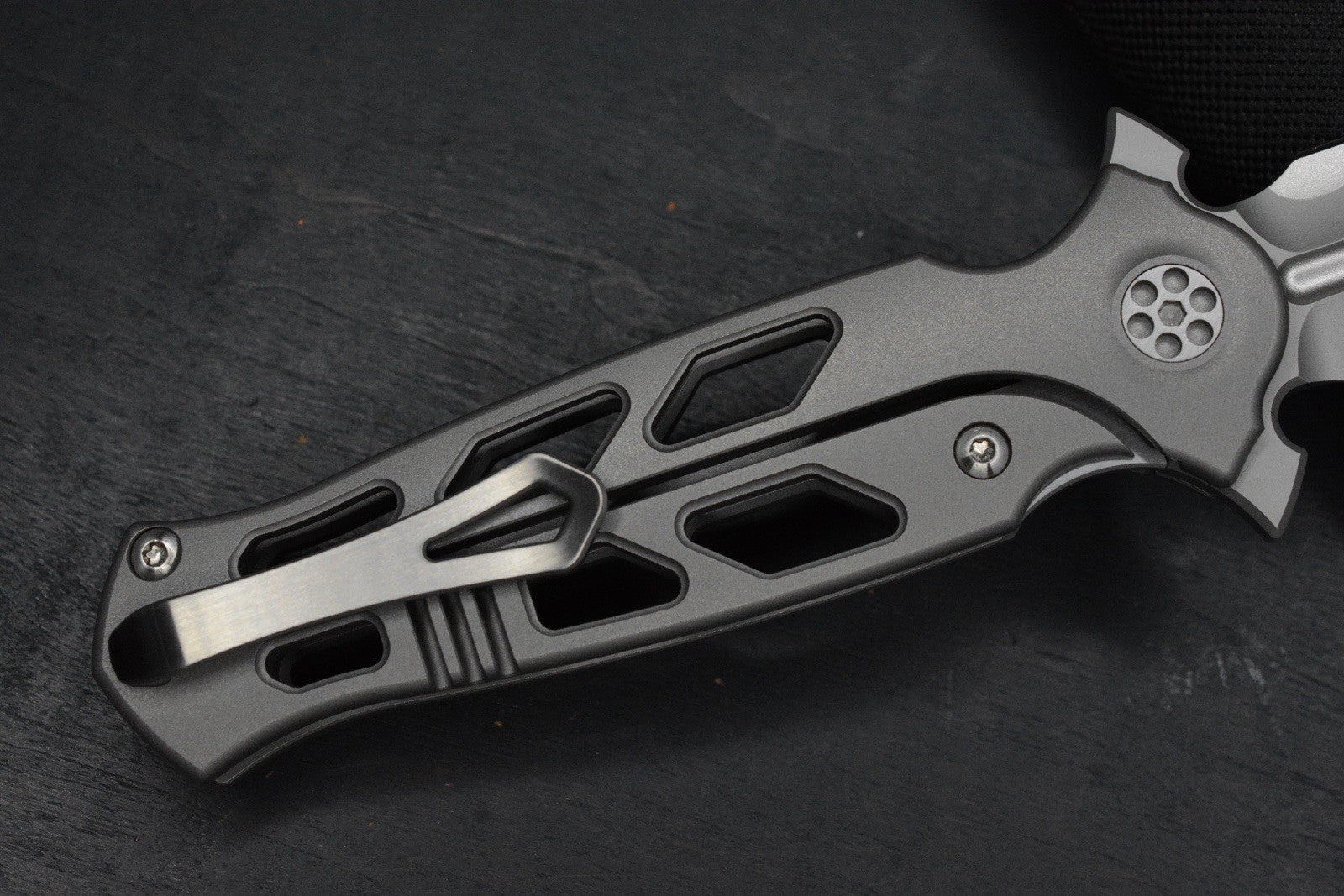 -Tip up satin finish Titanium pocket clip with hidden screw