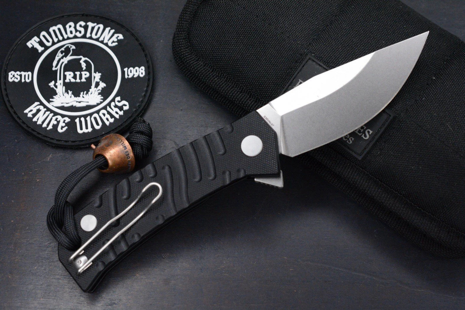 NEW Custom Knife Factory Echo Um Milled G-10 Clip Point w/Skull Bead & TKW Patch