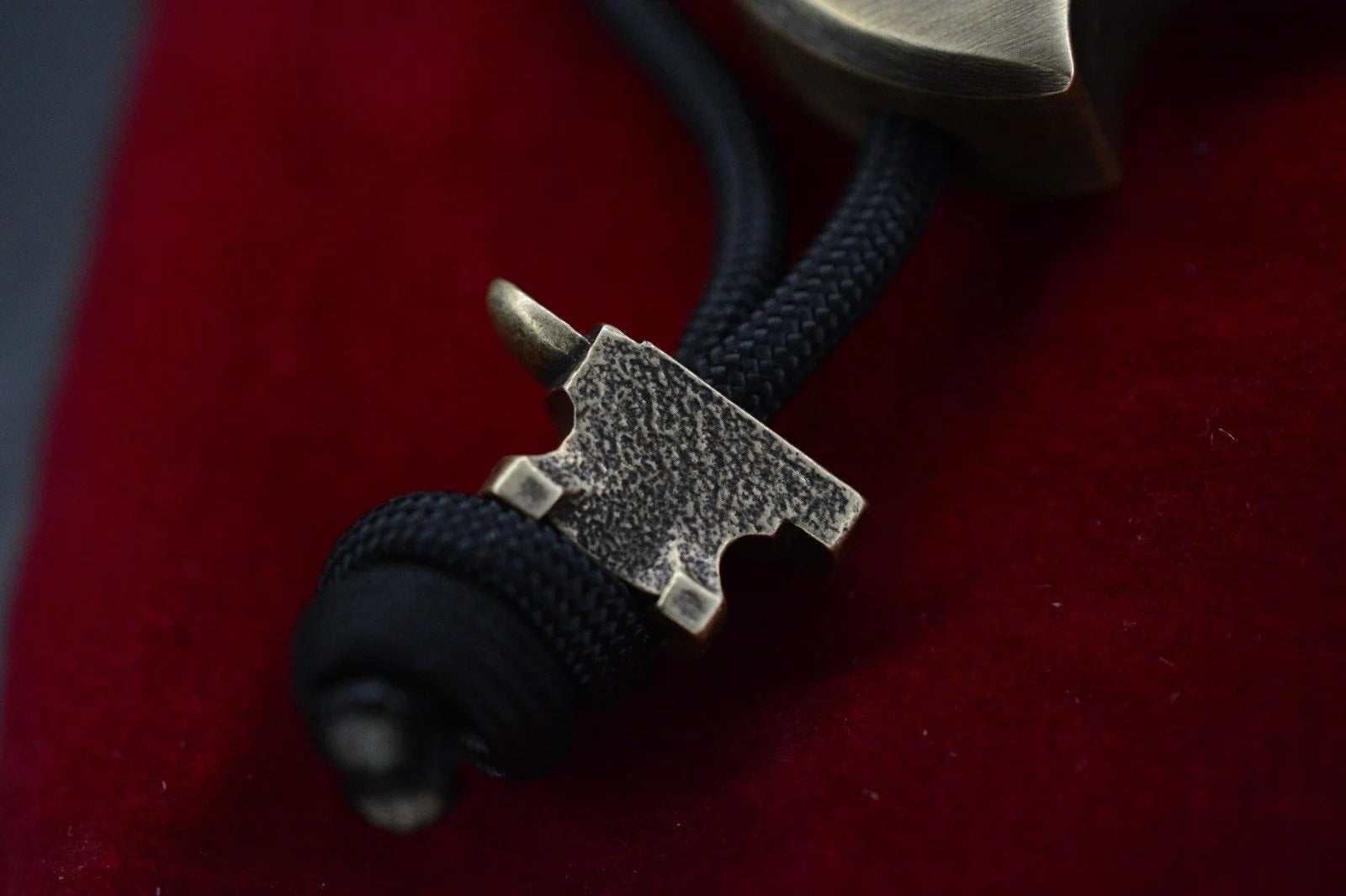 A min anvil bead casted in brass is the only way to carry this piece of pocket art master-fullness.