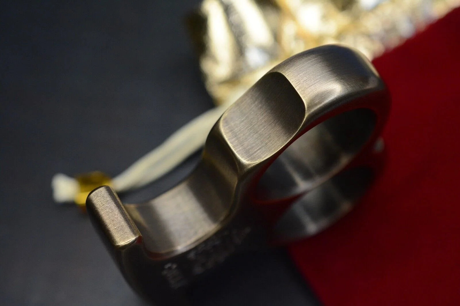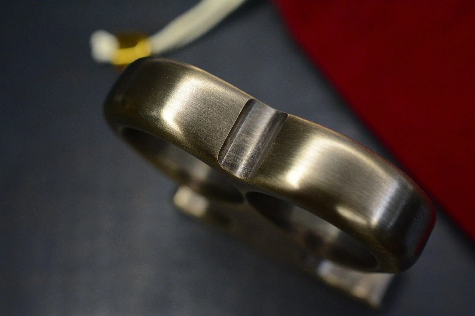 This style is perfect for those who want a piece lighter than the standard 4-finger. This pair is designed with X-large finger stalls and a dark patina finish. 1 1/16" finger stalls and is 5/8' thick