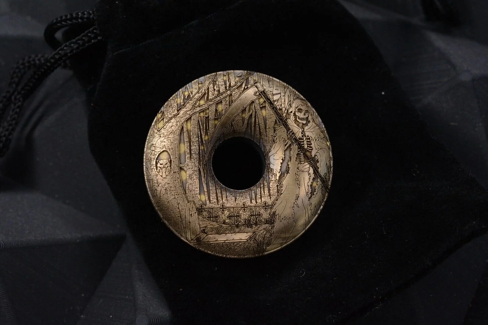 New Grimnuts “Lifesaver” Graveyard Reaper Brass Engraved Pocket Art