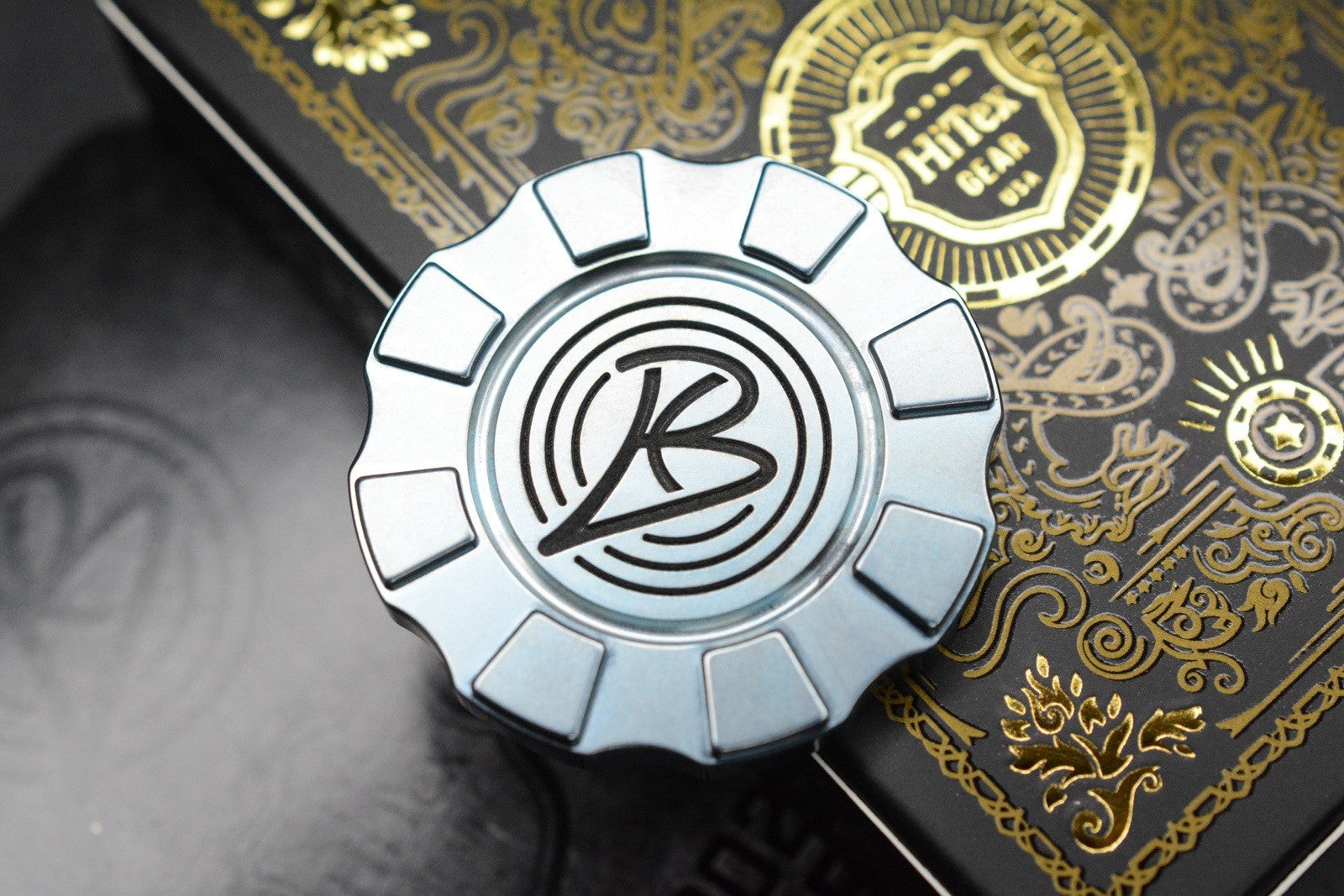 NEW HiTex Ben Krein - Light Blue Ano Ti/ Hammered Patina Brass Inlay Poker Chip