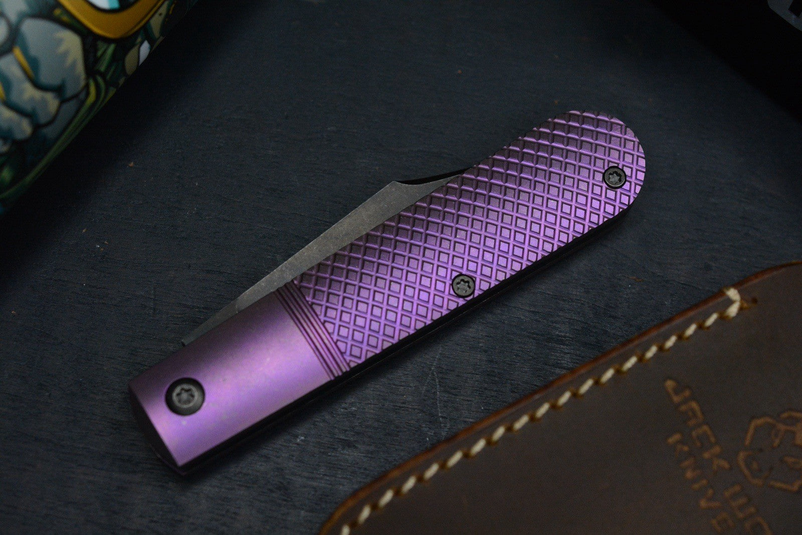 NEW Jack Wolf Big Bro Jack - Purple Titanium Cross Hatch w/ Leather Pouch EXC