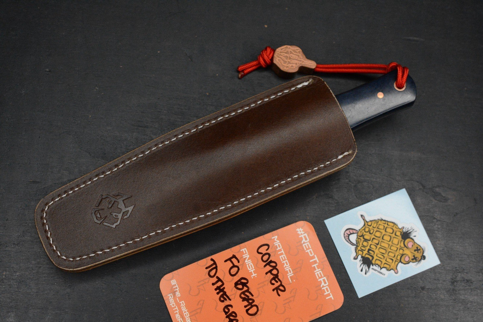 Sheath: Brown full grain Leather w/ white Stitch by Taylor Cortes (100% USA Made)