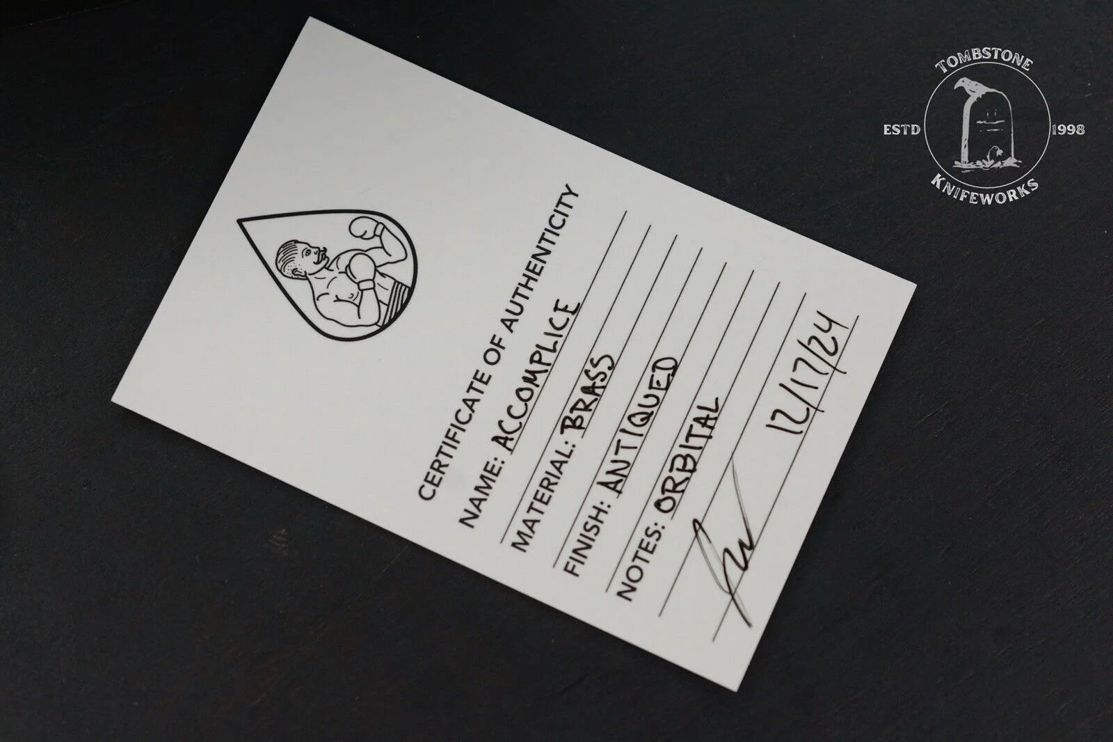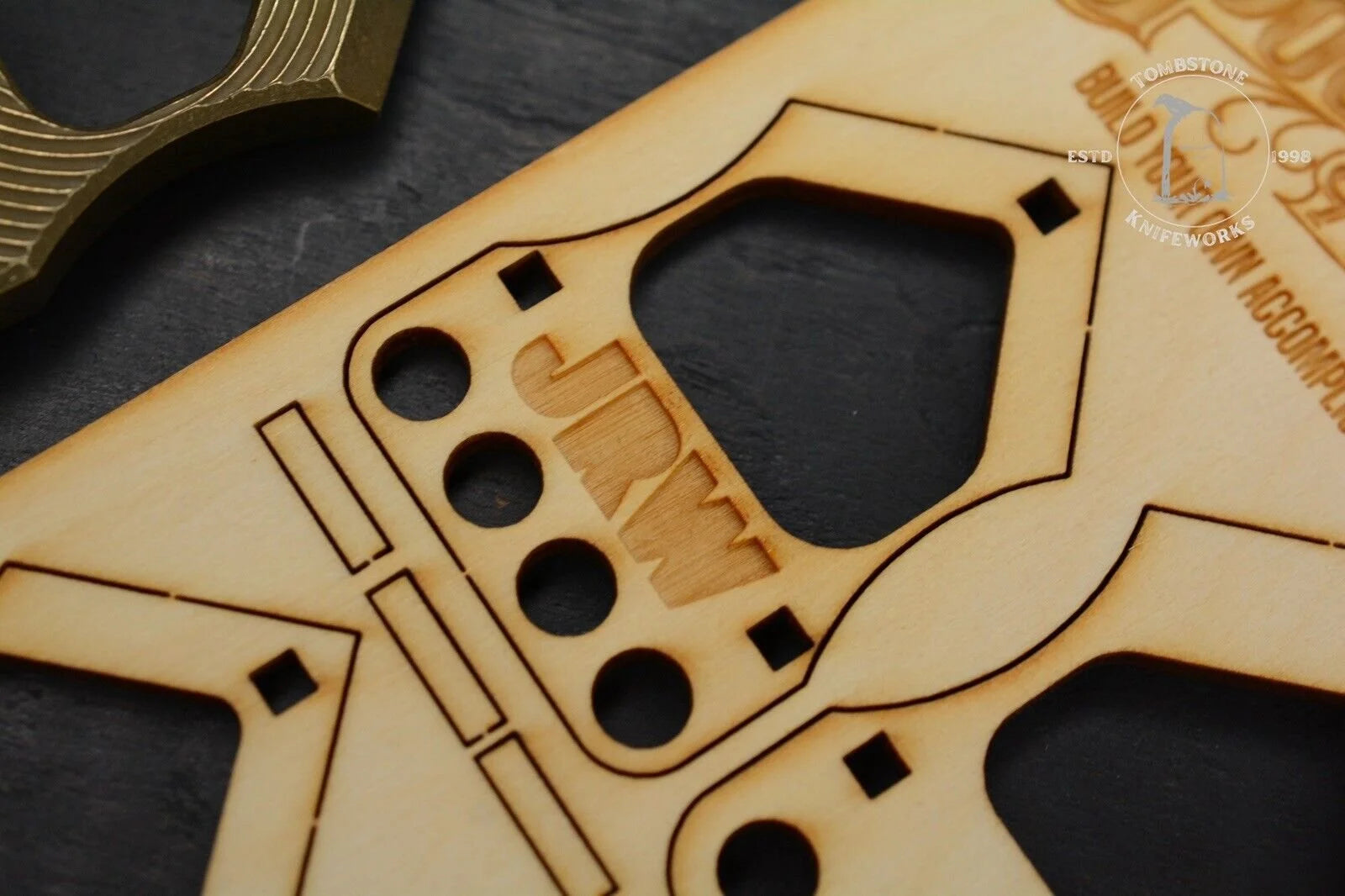 This piece comes with a wooden cut out Make Your Own Accomplice Kit from JRW. A fun accessory to accompany your Brass Accomplice. I also put an Homage Curator Ultem Bead on this one as a fun set. Homage refers to the bead being a reference to the Curator bead by JRW, it is not an official JRW product.