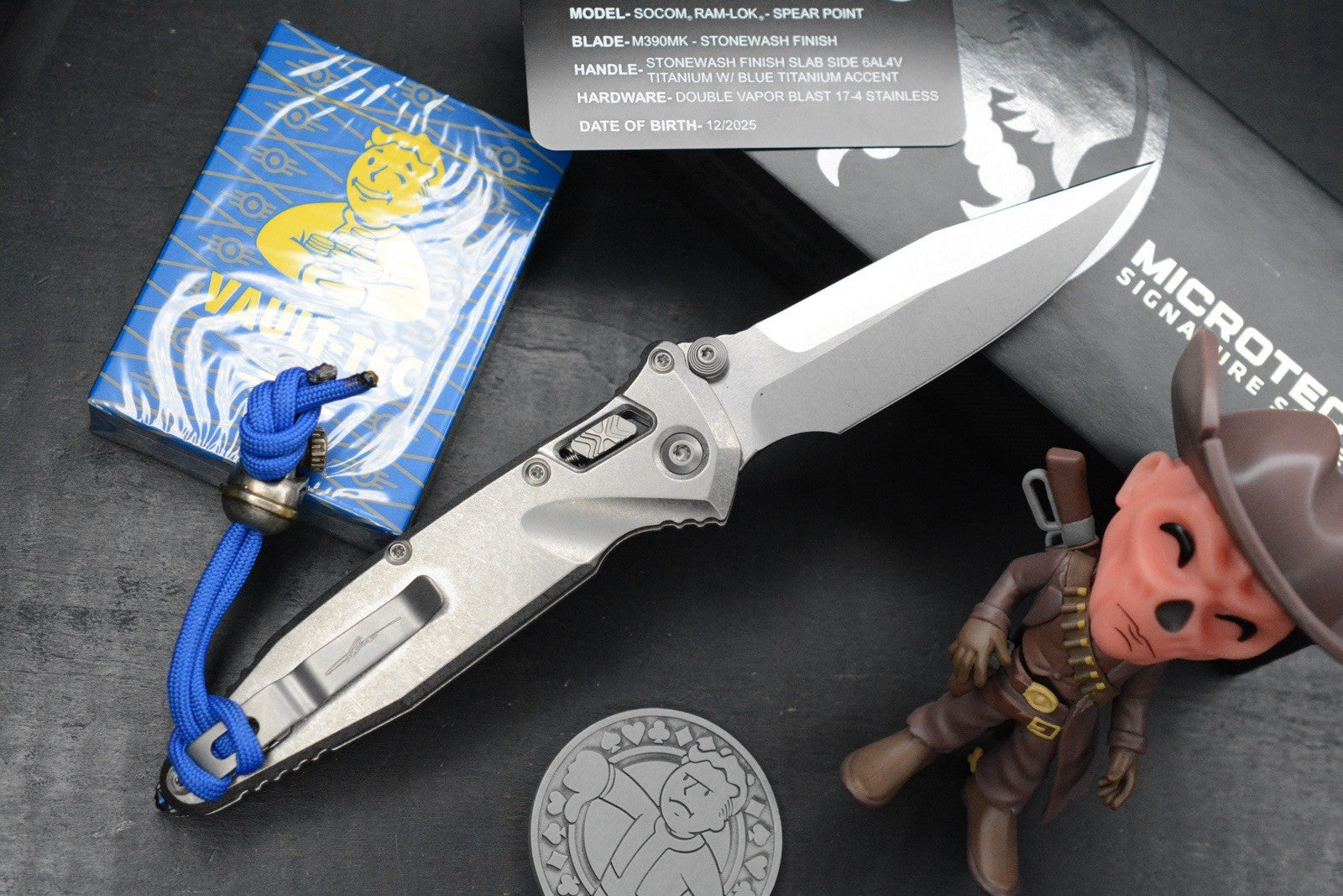 NEW Microtech Socom Bar Lock Slab Side Ti Spearpoint w/ Fallout Pack & EXTRAS