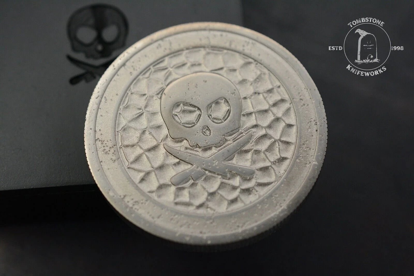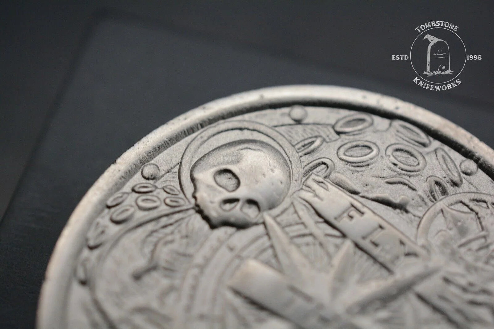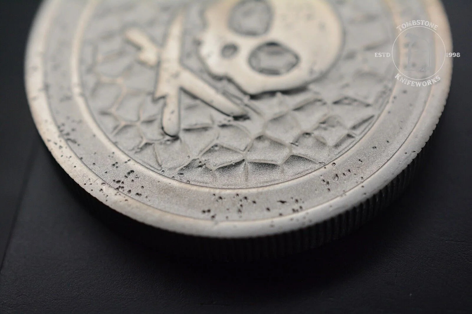 Arguably the most sought after coin design Pete’s Pirate life has ever dropped. Now in thick, solid titanium. Each coin is comes in a wooden storage box that can transform into a single coin display.