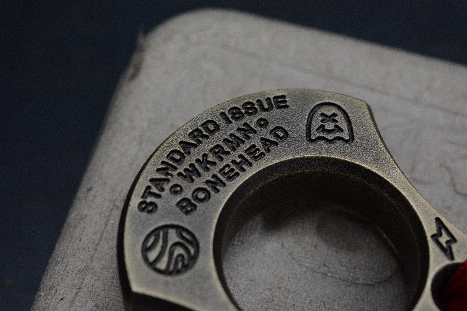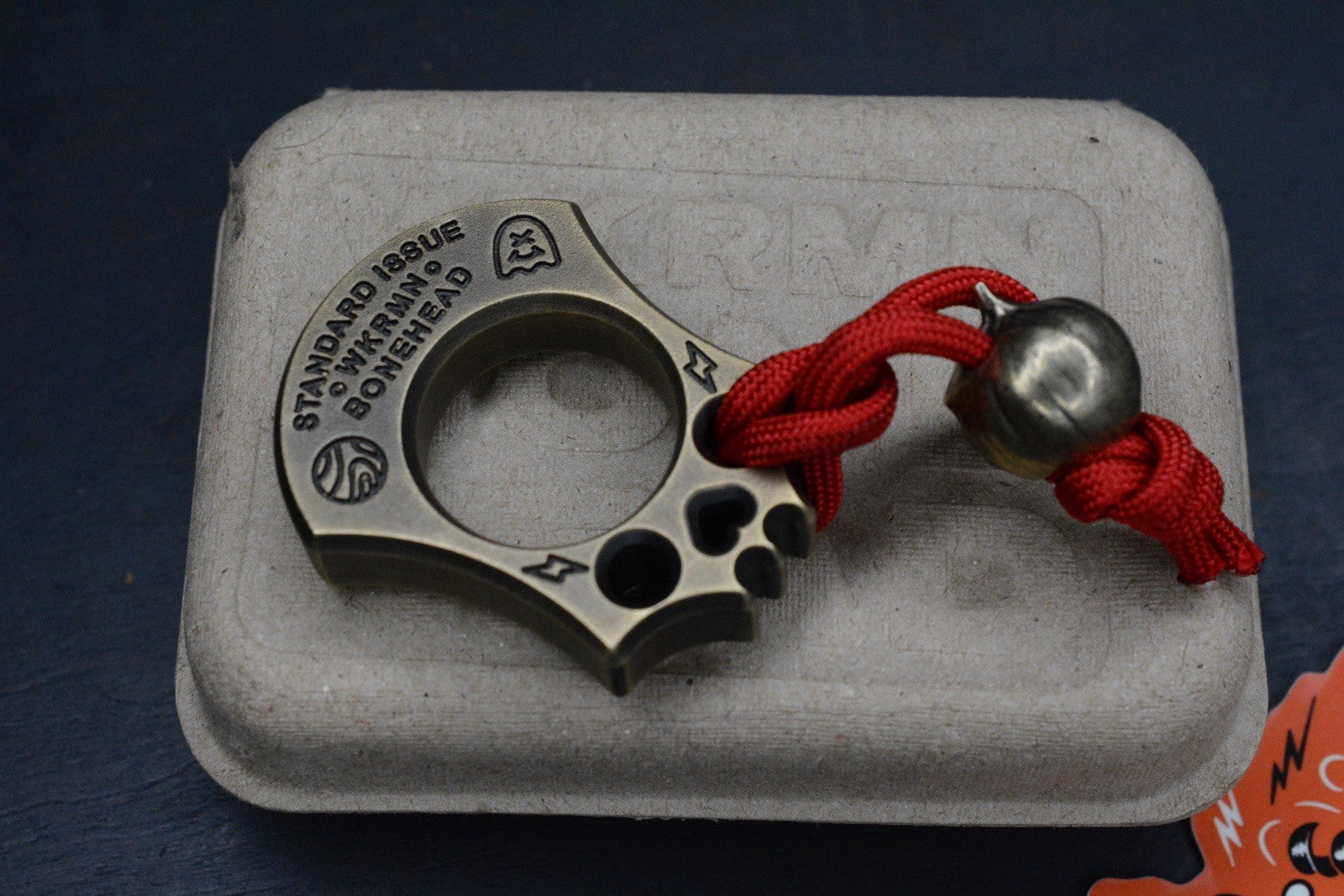 NEW WKRMN Bonehead Cyborg 1/4lb Paper Weight Brass w/ Brass Bead Re Microtech