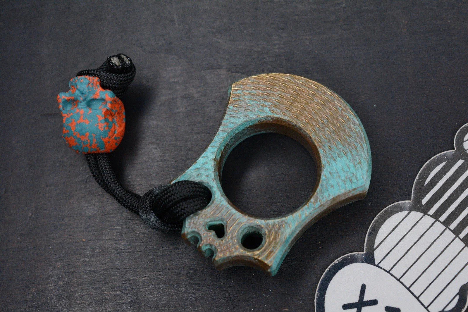 NEW Wkrmn Design Bonehead “Checkered” Turquoise Patina Brass w/ Skull Bead