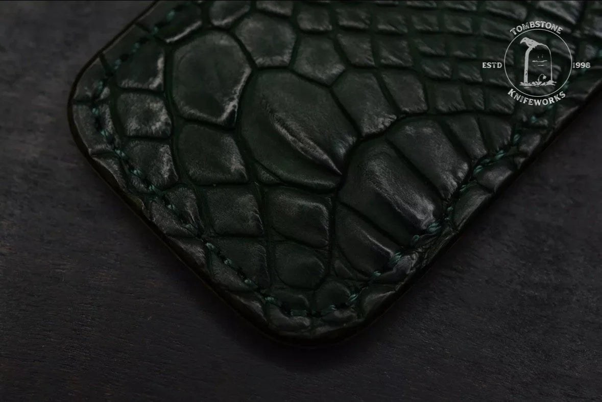 Rare Chris Taylor Custom Limekiln Fixed Blade Knife 2.75" AEB-L Hollow Ground Satin Reverse Tanto, Black Canvas Micarta Handles, Custom Robertson Alligator Leather Pocket Sheath. This Taylor Custom Limekiln Pocket Fixed Blade comes in Black Canvas Micarta with Handmade Custom Robertson Alligator Pocket Sheath. It originally came with a kydex sheath but you know what kinda dude I am so I put in the alligator sheath to make it even more unique. Arguably the Finest Pocket Fixed Blade Made in the Price Point - made 100% by hand from Chris Taylor renowned custom maker of finest quality folders & fixed pocket blades. A reverse tanto is the best of both worlds giving you a small amount of belly for slicing and press cuts while the strongly reinforced tip is really never in danger of breaking. It may not stab like a dagger or whittle/poke like a clip point but for a hard use everyday carry, this is what you want.