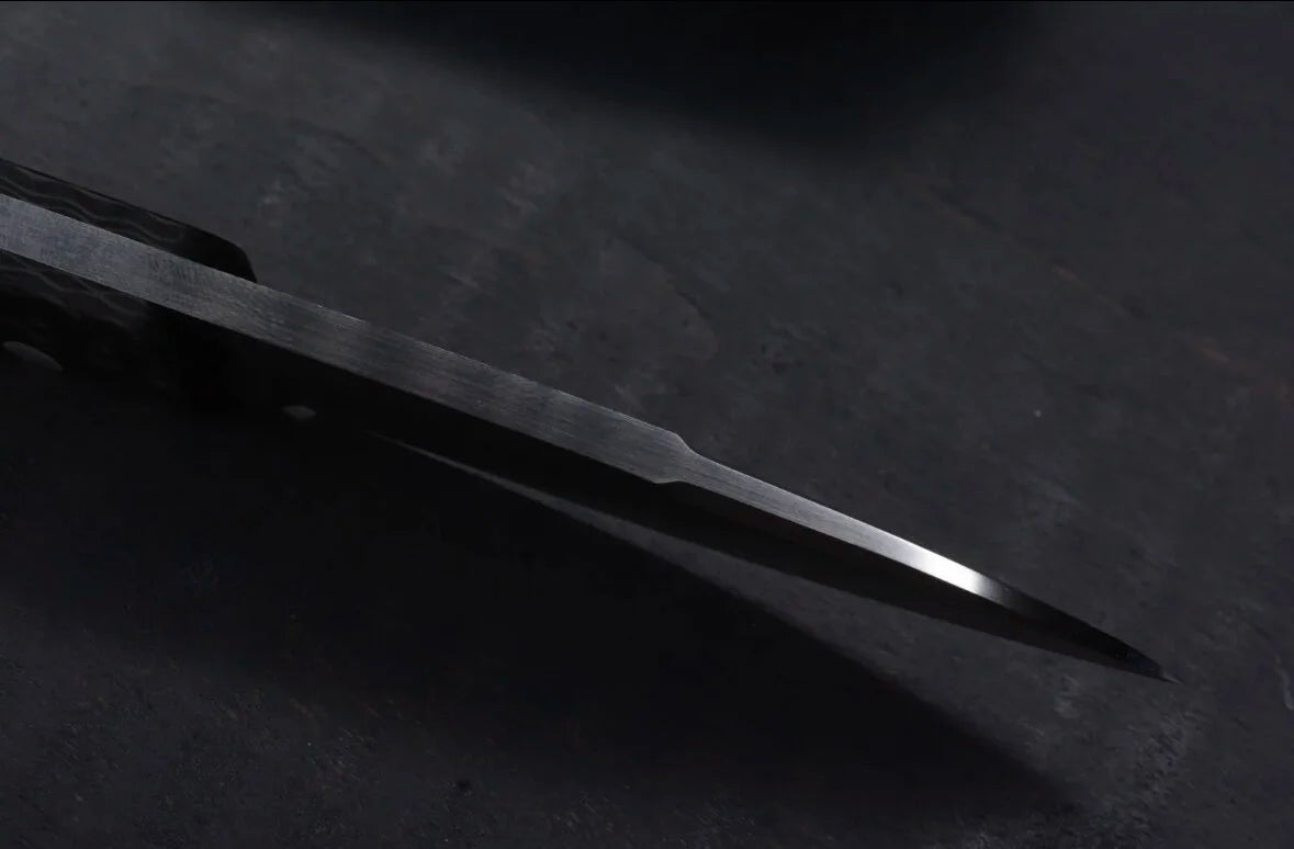 CPM154 stainless steel. Heat treat and cryo by me. Hardness on this batch came out at 60.5 - 61.5 Rockwell.