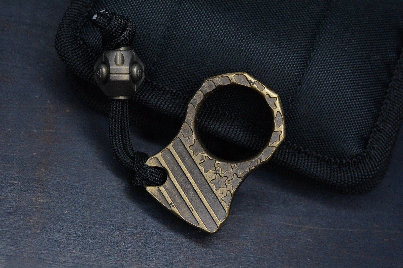 RARE American Flag Accomplice Brass Engraved w/ Copperhead Metal Works Bead