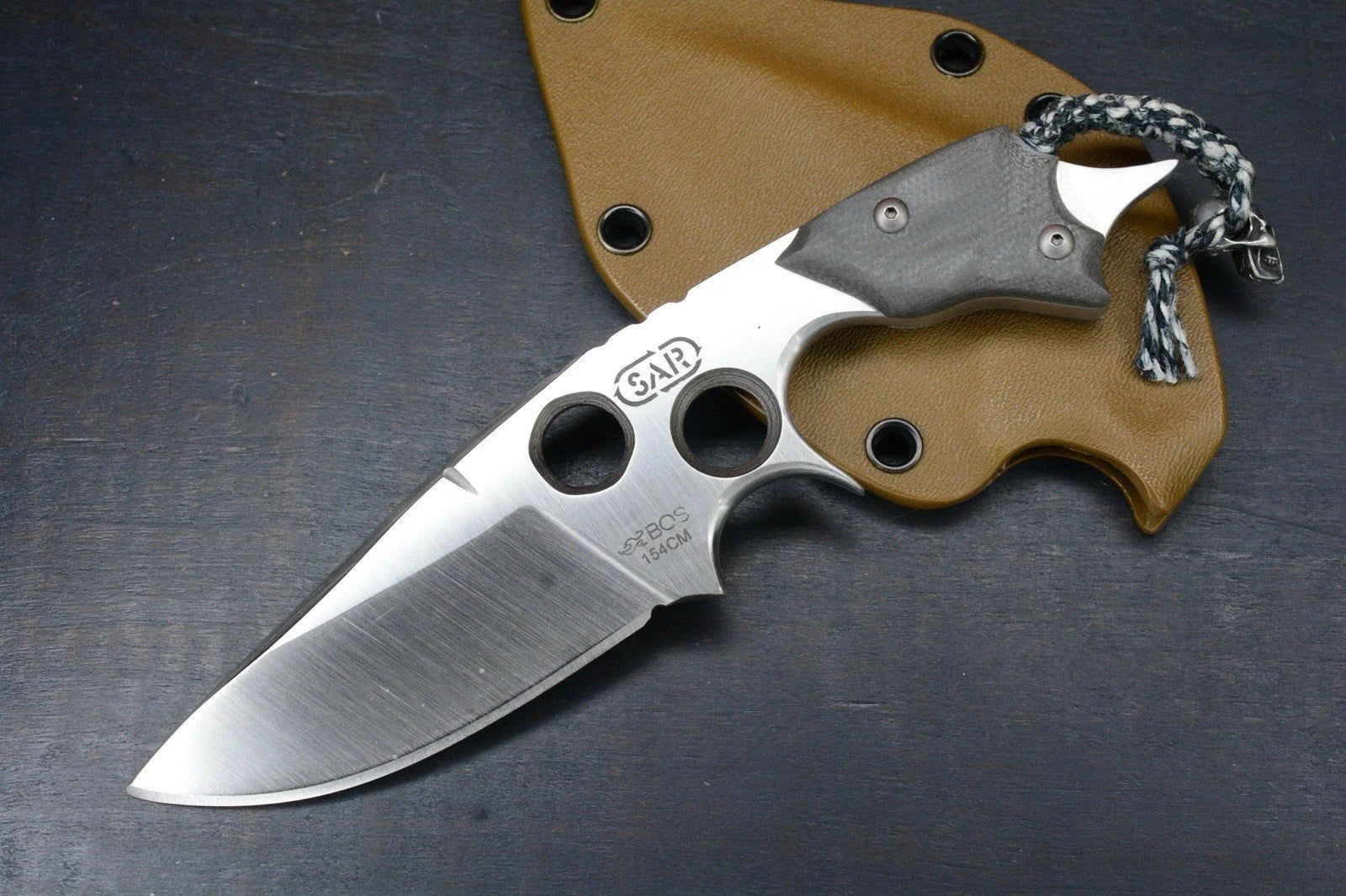 This is an original Spencer Reiter SAR Hornet choice of most all -“Tip of the Spear” fighters. Blade is 1/4" thick and 1 1/2" deep. Very versatile with finger grips and MiCarta Scales and Lanyard with Skull Hornet logo bead. Holes in blade for lighter weight. Notched thumb rest. Kydex sheath with belt clip. Excellent Condition …Rare -Collectability -Very High !!!