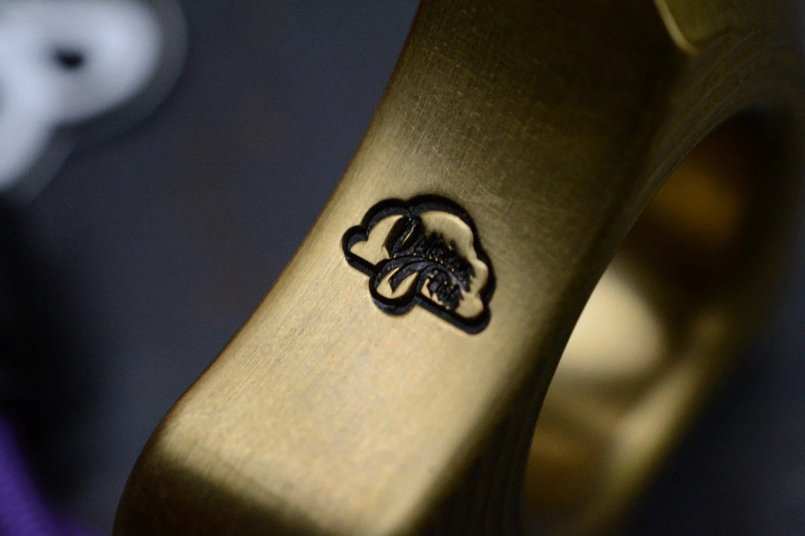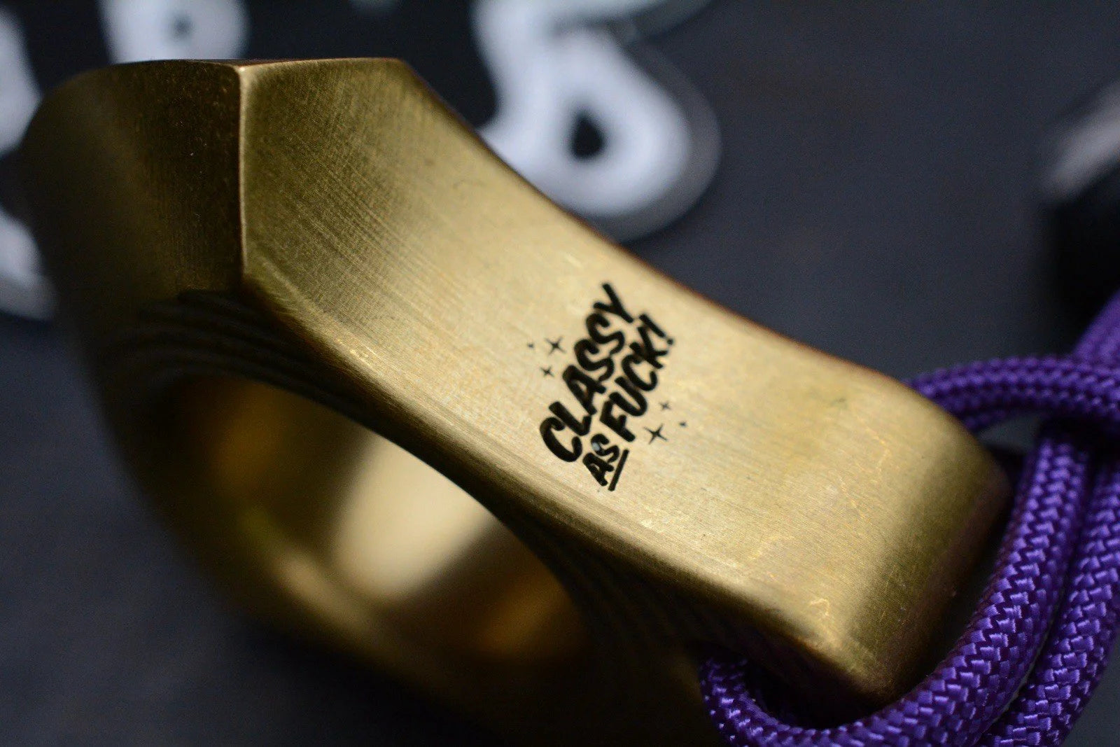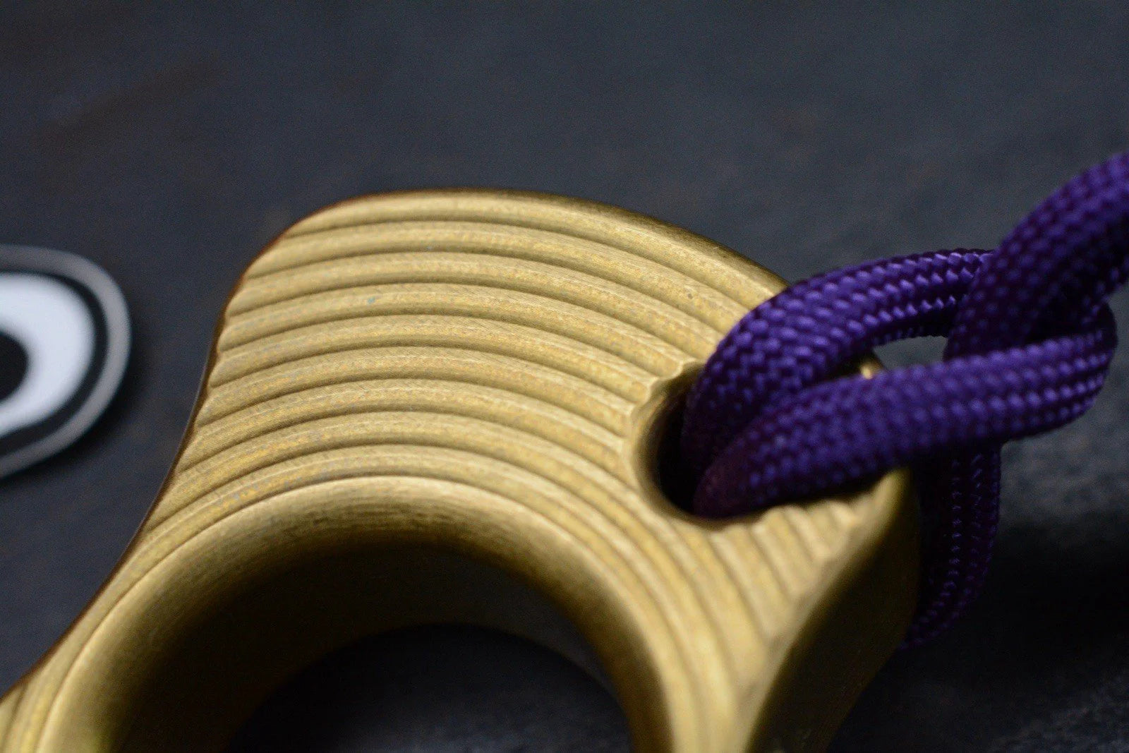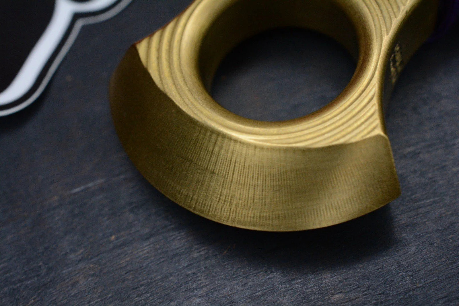 Brass Fistahawk; radial pattern with sanded faces; 5/8” thickness; 1” ring size; lanyard hole.