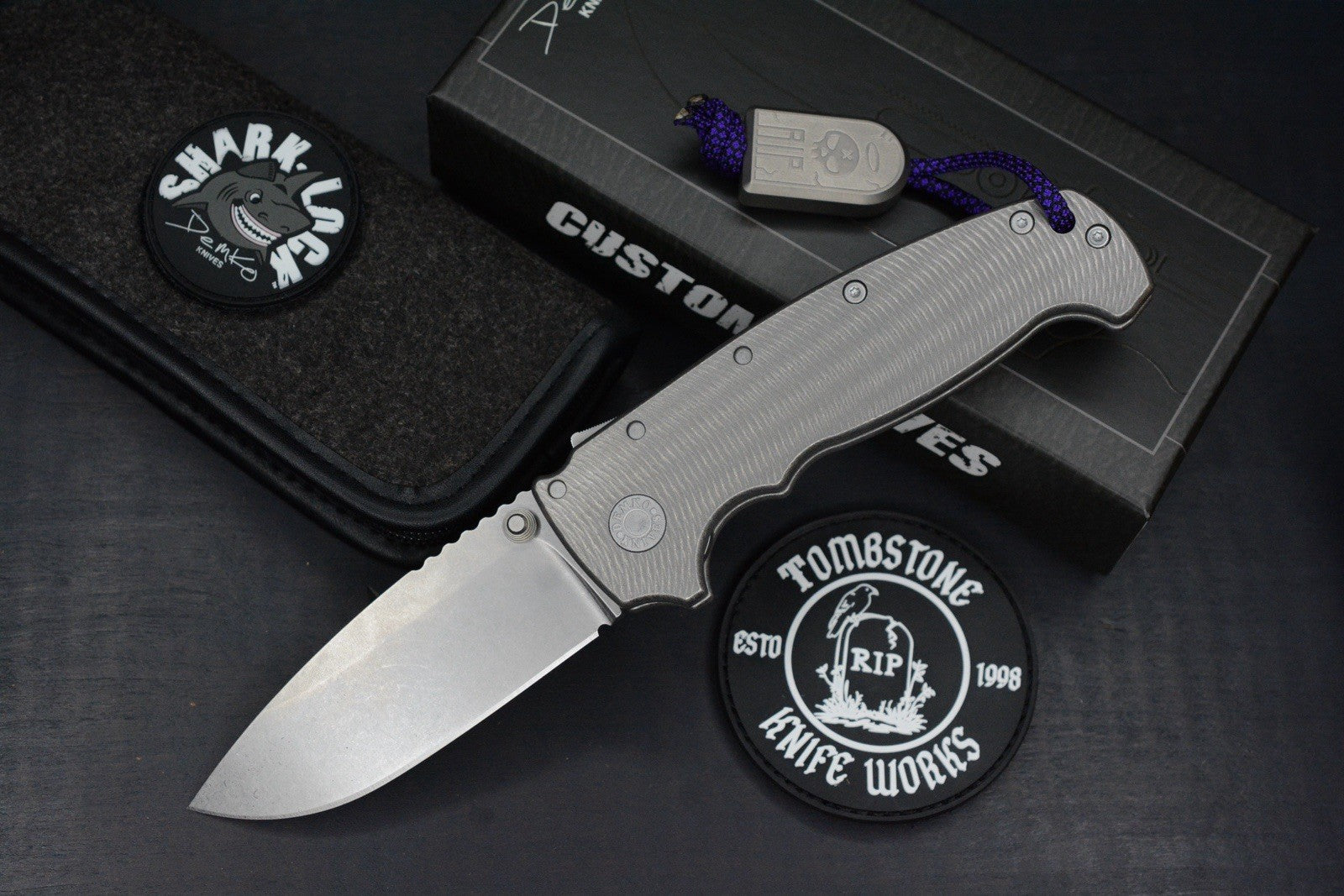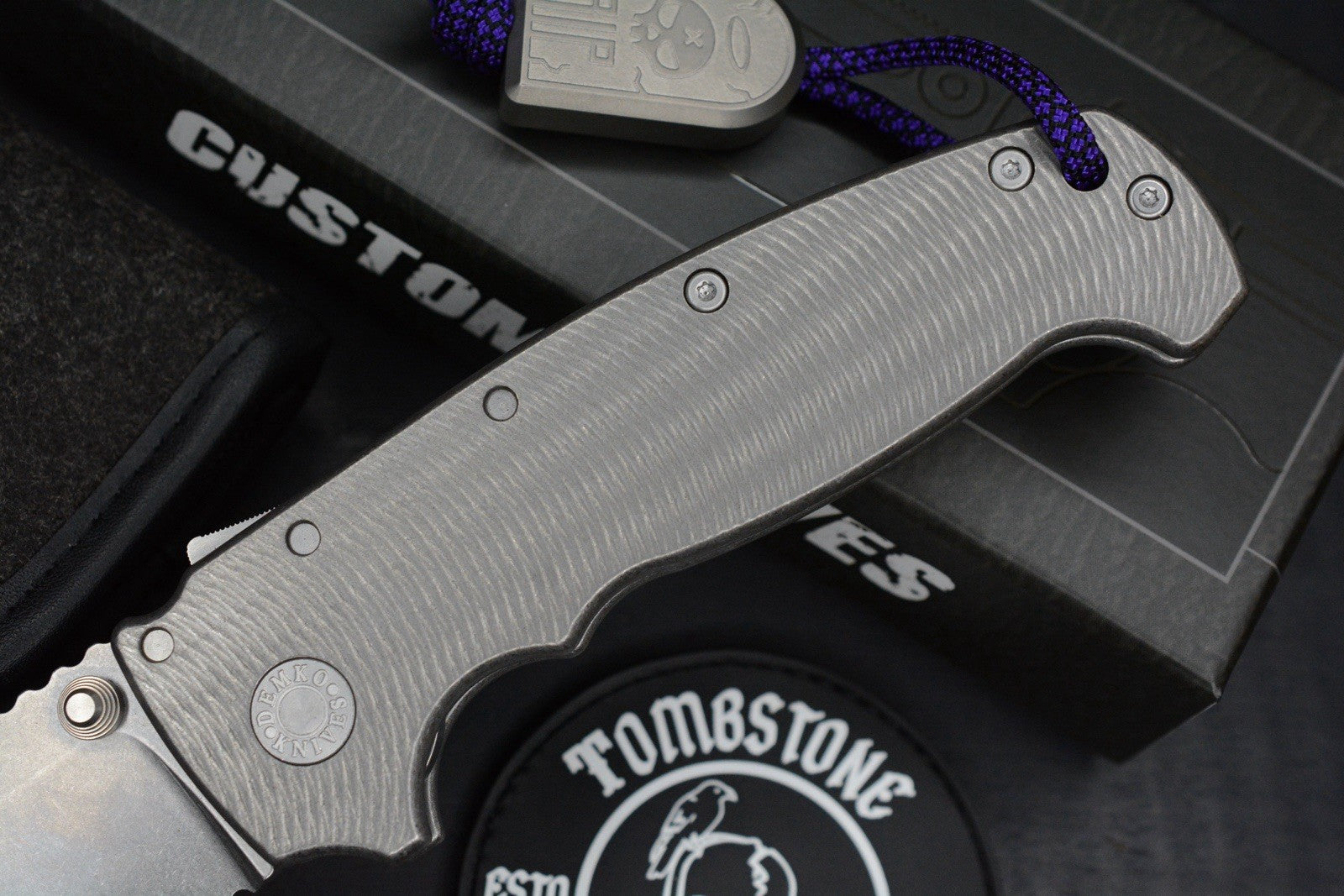 RARE Demko AD20 XL MagnaCut Drop Point / Textured Bead Blasted Ti w/ Tombstone
