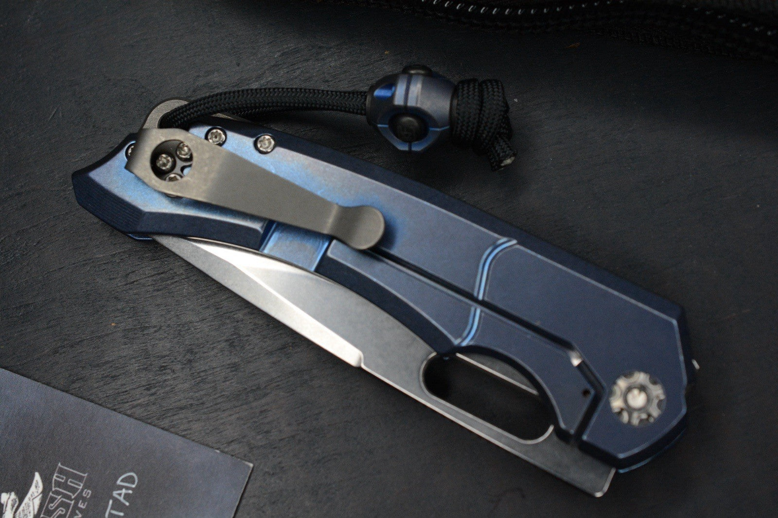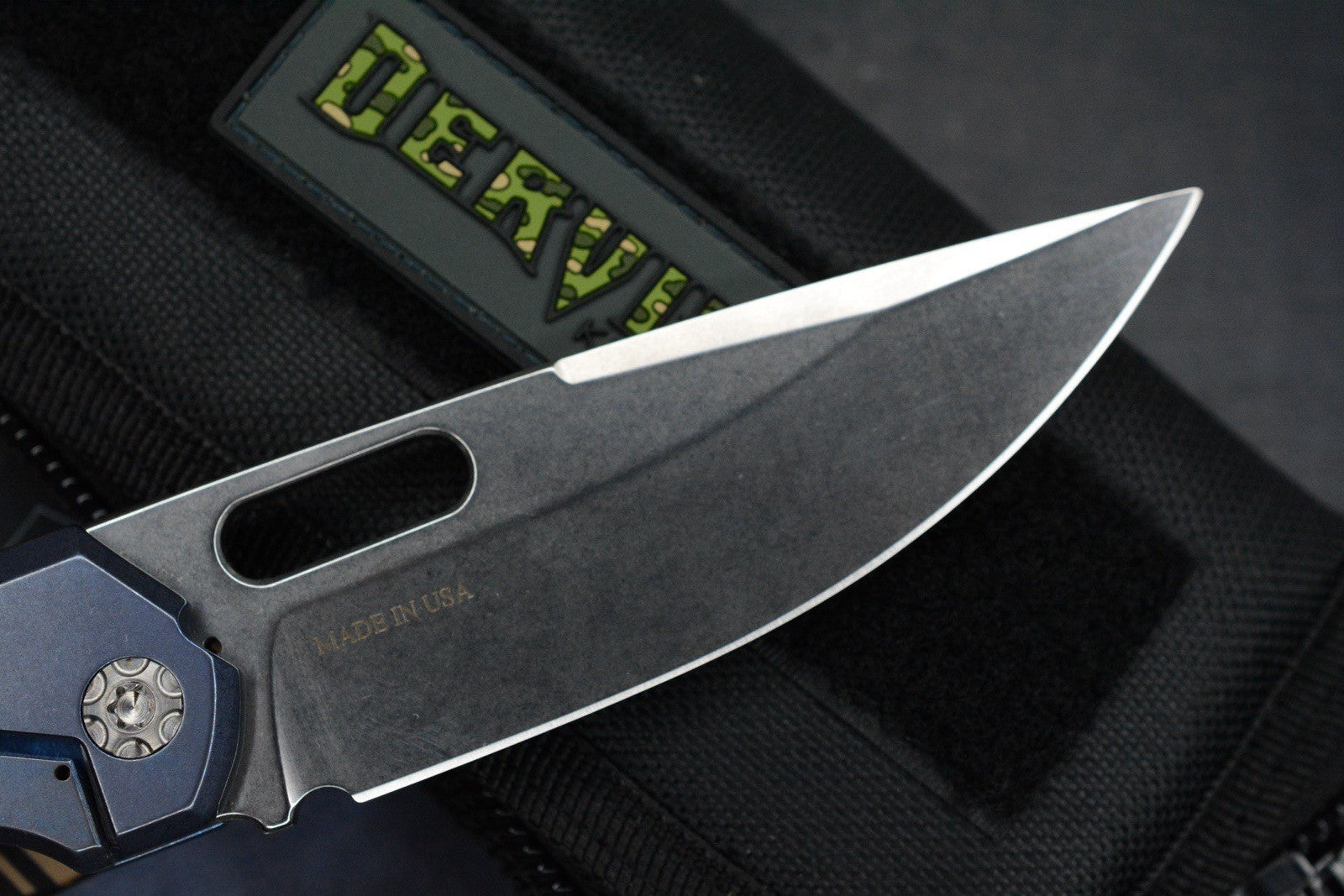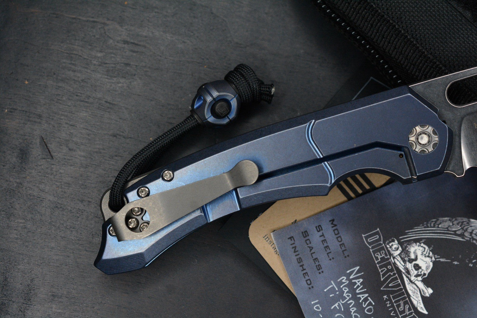RARE DERVISH / TRIPLE AUGHT DESIGN Navaho Full Size Blue Ano Handle - Triple Fullered Magnacut Blade w/ Skiff Bearings -Custom Titanium Jimped Backspacer / Custom Titanium Pivot / Triple Aught Logo for assure World Class in Every Way !!!