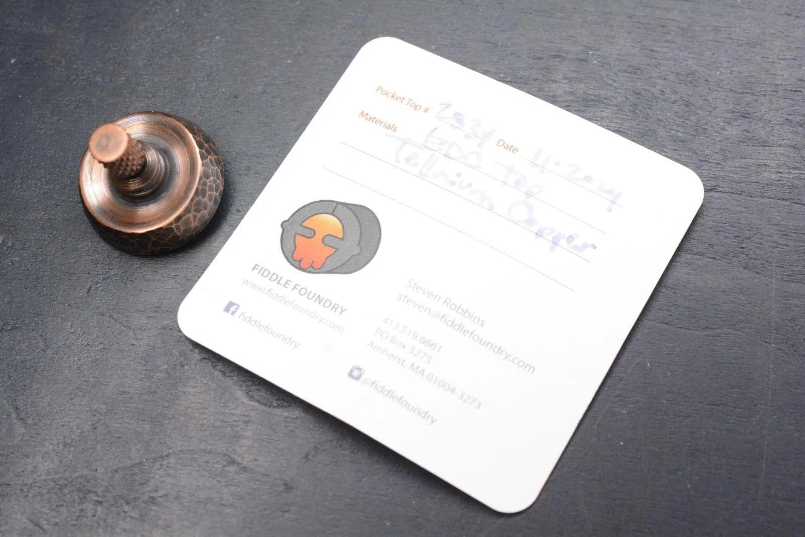 RARE Fiddle Foundry EDC Spin Top - Hammer Finished Tellurium Copper / Ceramic