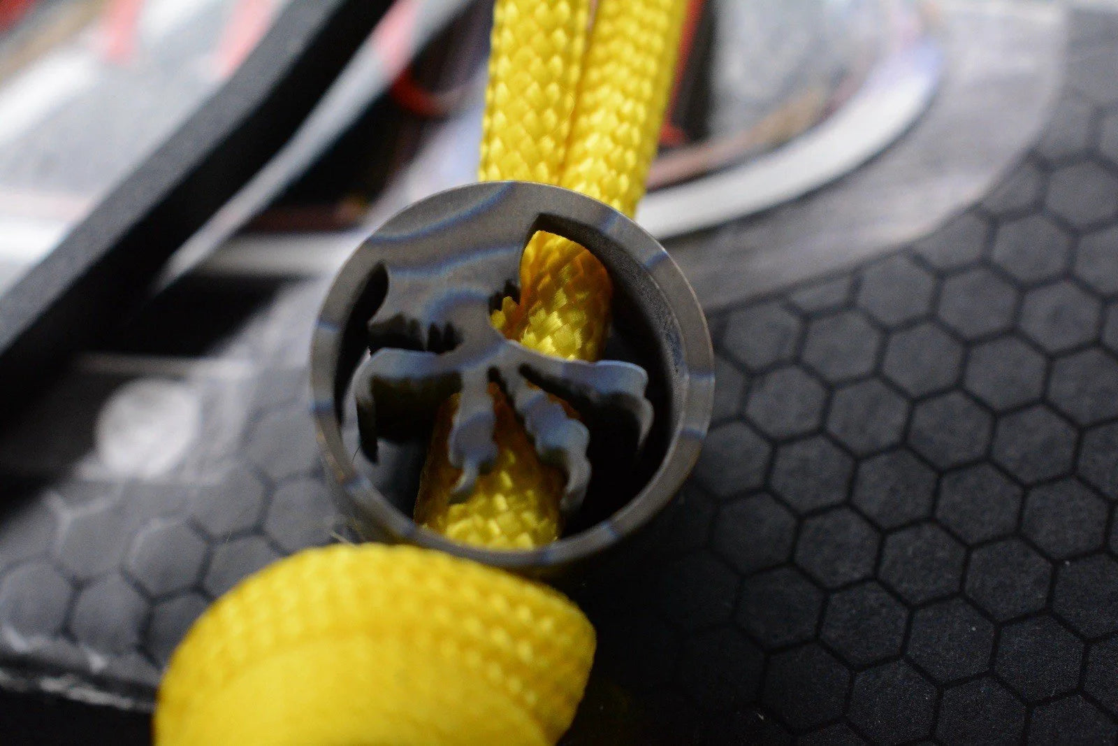 This ultimate collector piece comes with a flamed titanium bead and a Microtech red and black patch.