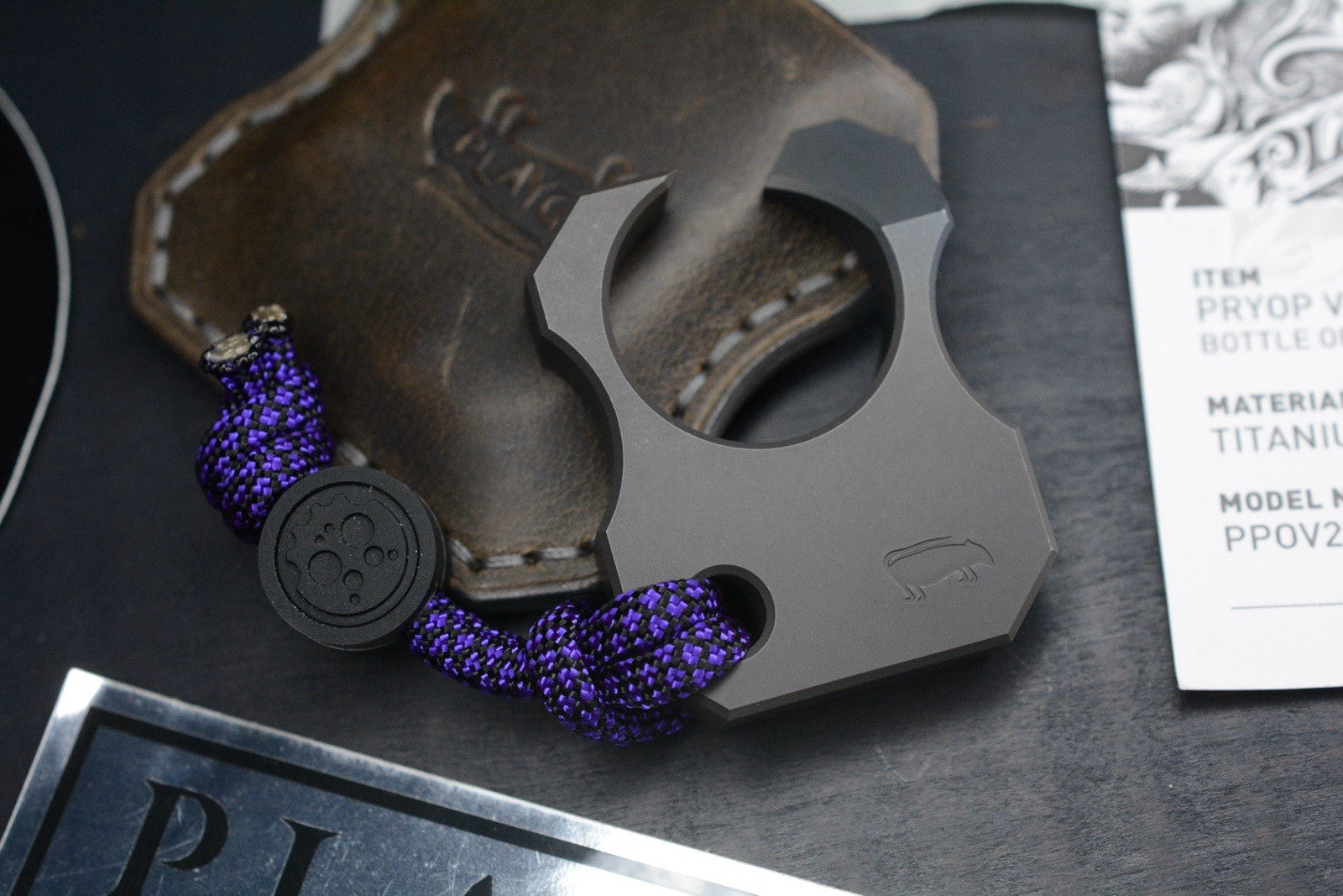RARE Playge Pryop V2 Bottle Opener / Pry - Titanium w/ Leather Sheath & Skall