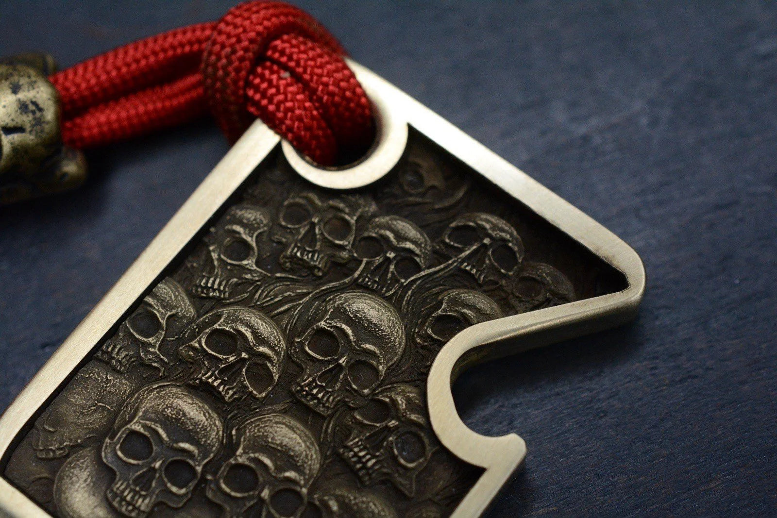 This piece is first class edc carry for custom engraving of “Pile of Skulls” … Custom Bead brings even greater WOW appeal. Priced at a point that blows away mass produced pieces vs. true handmade USA very limited handmade useable art.