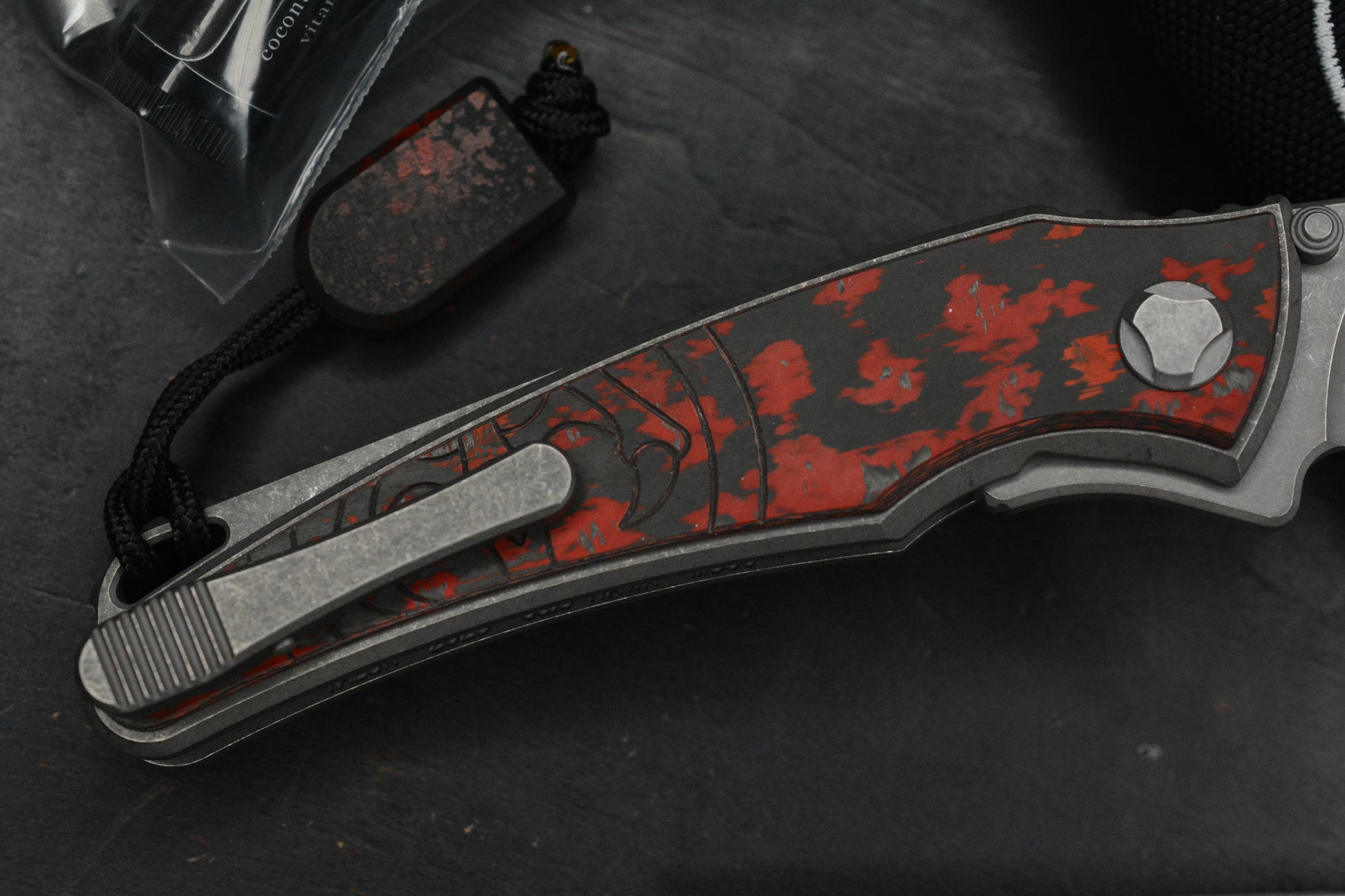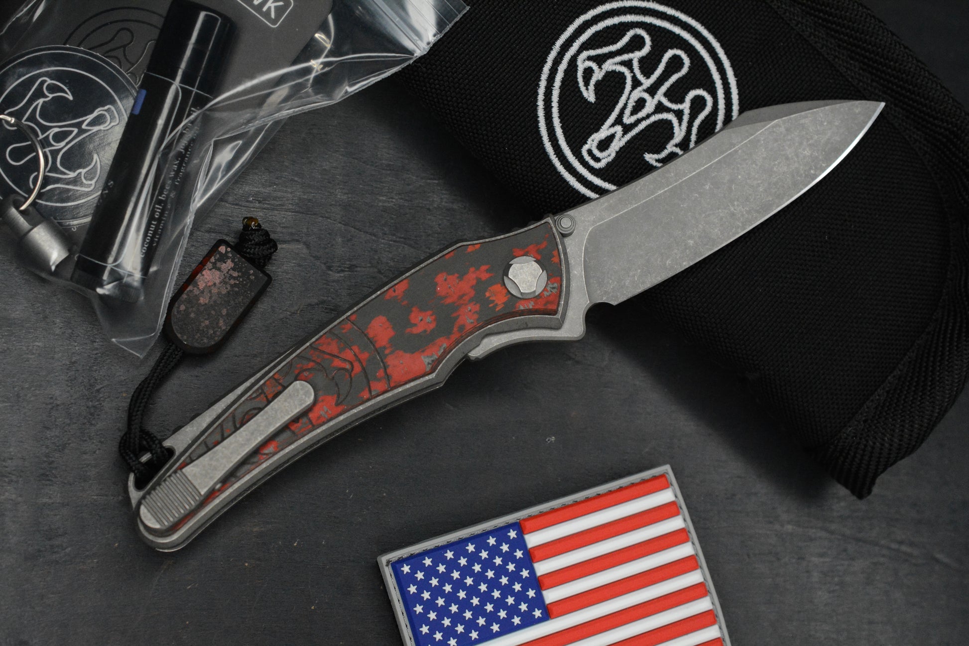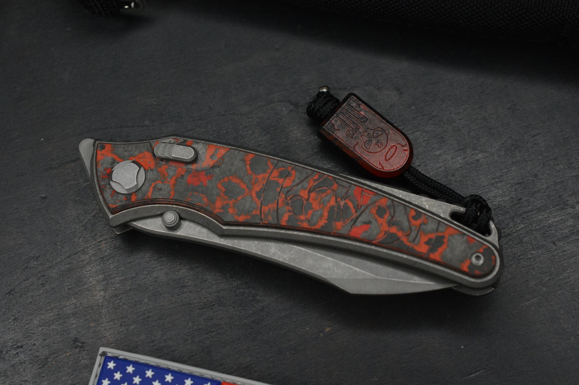 NEW Hawk Knives Talon M390 Ti Red Lava Flow Carbon Inlay w/ Custom Tombstone Bead