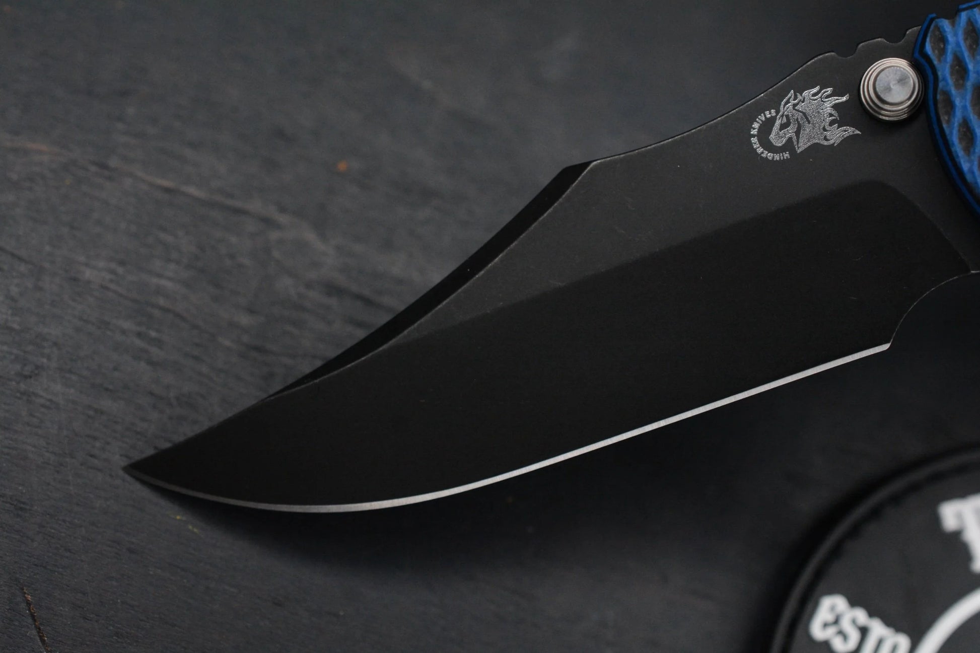 NEW Hinderer XM-18 3.5 BOWIE Battle Black Ti-Blue G10 Magna Blade w/ JRW Beads